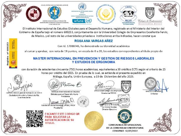 - Masters Internacionales de 750 horas certificadas. Coste de equidad social de 145 $ o 31.000 Bs.